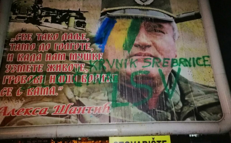 Aktivisti Lige socijaldemokrata Vojvodine (LSV) ispisali su grafite po bilbordu sa likom ratnog zločinca Ratka Mladića u Baču. Oni su napisali “Krvnik Srebrenice. Zločinac. LSV.”