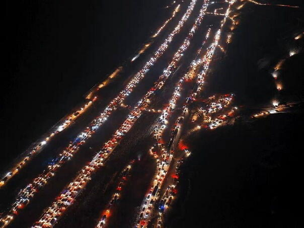 Snimci iz zraka pokazuju da su se kasno u nedjelju na putevima koji vode ka Damasku, ali i u suprotnom pravcu, formirale duge kolone vozila, nakon što je glavni grad Sirije oslobođen od režimskih snaga, javlja AA.