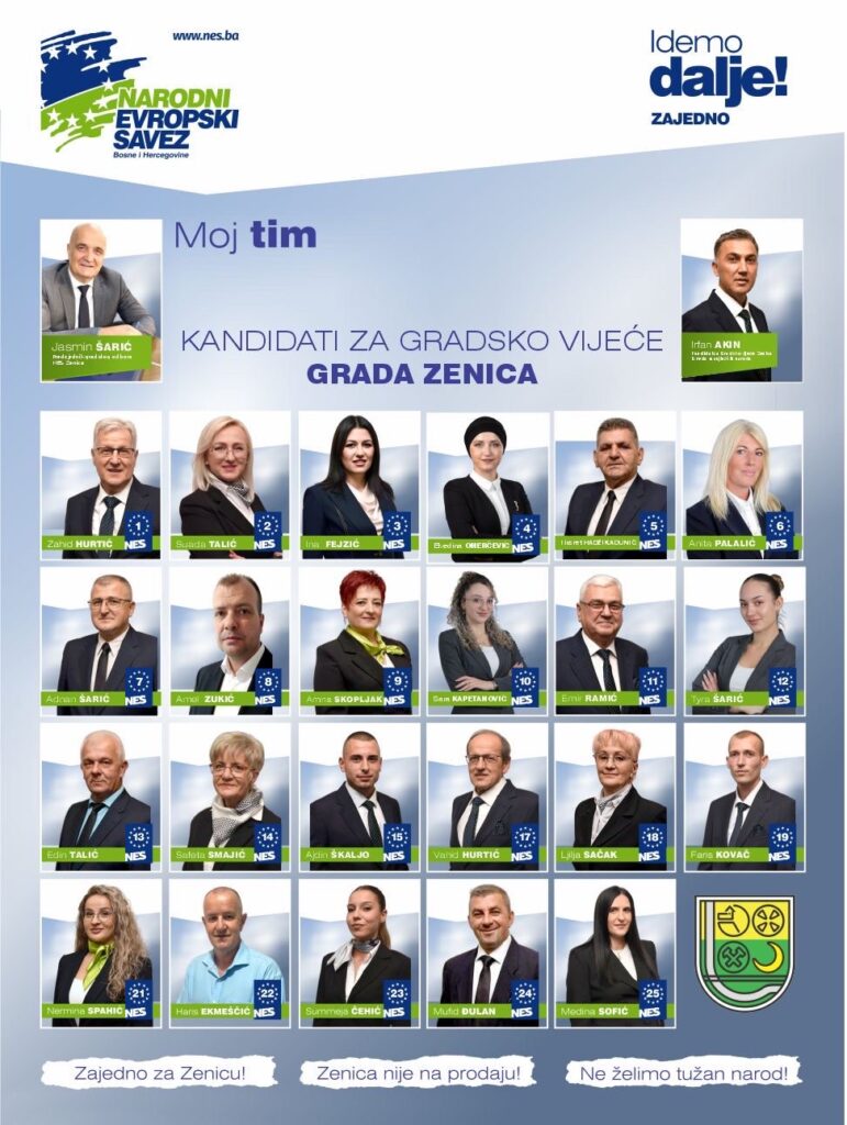 Narodni evropski savez grada Zenica zalagat će se da Zenica i Zeničani imaju domaćina i adresu za svaku poteškoću, a to je Gradsko vijeće. Problema u gradu je mnogo: nedostatak Prostornog plana; neuslovne specijalističke i ambulante porodične medicine; problem kanalizacije i odvodnje oborinskih voda; zaraslo korito rijeke Bosne i pritoka; problemi sa daljinskim grijanjem; nedostatak servisa za privrednike u sastavu gradske uprave; nedostatak službe za koordinaciju rada kućnih savjeta; nerad gradskih mjesnih zajednica; problem gradskog saobraćaja i mnogo, mnogo drugih.