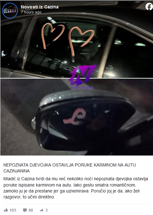 “Muke” mladića iz BiH: Nepoznata djevojka ostavlja mu srca na vozilu: “Molim te da prestaneš”