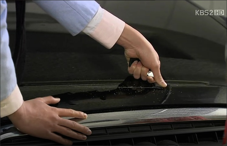 Za početak vodom i šamponom za automobil operite izgrebani dio i ostavite ga da se dobro osuši. Zatim tankom četkicom ili čak čačkalicom za zube (koja je preciznija od četkice) precizno nanesite novu boju na linije. Ostavite da se suši oko dva sata, a nakon toga ispolirajte.