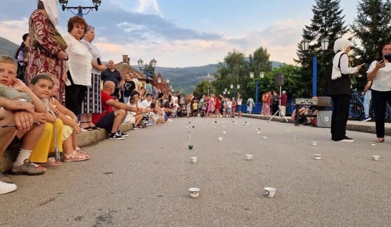 Na mostovima u Goraždu i Ustikolini poredano je 8.372 fildžana, a mladi su iscrtali i cvijet Srebrenice.