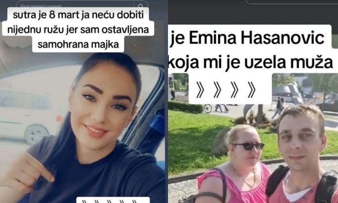 - Izudin Hasanović me je ostavio nakon dvije godine braka i oženio baku 32 godine stariju. Sada sam samohrana majka, Emina, koja mi je otela muža, dobila je dijete sa njim. Ja čestitam od srca. Iznudine, čestitke i od mene. Za sedam dana je rođendan našem djetetu. Sjeti se i nas, Iznudin me je ostavio i prodao sve stvari iz kuće. Ostao mi je samo frižider i krevet, samo je dio objava na društvenoj mreži TikTok u kojima Šemsa piše o preljubi svog nekadašnjeg supruga sa kojim ima dijete i njegovoj novoj ženi, sa kojom ju je prevario.