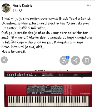 U nastavku pročitajte objavu, a ukoliko vam se ponude na prodaju klavijatura i mikrofon, odmah o tome obavijestite Kadriće.