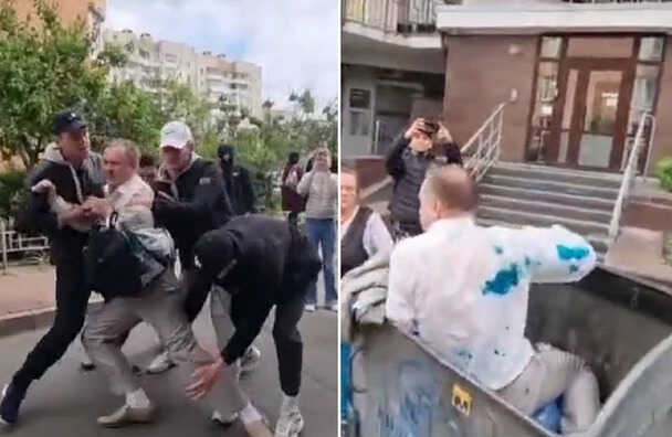 Nepoznati napadači su ga polili zelenom tekućinom i navodno također urinom te ga gurnuli u kontejner za smeće. To je trebala biti kazna za neselektivne riječi upućene Alini Mykhaylovoj, prijateljici poginulog ukrajinskog komandanta Dmytra Kotsyubayla (poznatog kao Da Vincijevi), koji je pao kod Bahmuta u martu i dobio titulu heroja Ukrajine.