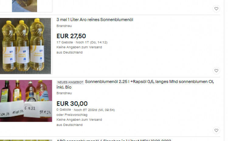 Naprimjer, kako navode, trgovac namalo u Lajpcigu naplaćuje sramotnih 20 eura za bocu Thomy suncokretovog ulja, što je oko osam puta više od maloprodajne cijene. Na oglasu je navedeno i da ulje nije otvoreno.