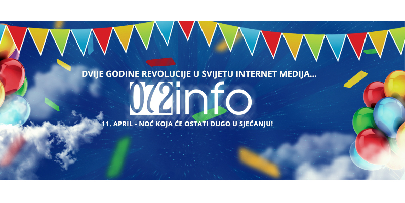 Da se odlučilo otići korak dalje pokazatelj je i druga godišnjica rada portala, a koja će u režiji 072info još jednom pomjeriti granice internet poslovanja. Naime, ono o čemu ovih dana bruji bh. i regionalna javnost jeste rođendanski koncert 072info u Gradskoj areni Zenica, 11. aprila sa početkom u 20.00 sati, a gdje će interpretacijama kralja narodne muzike Šabana Šaulića, gošćom Aleksandrom Prijović i specijalnim gostom iznenađenja portal na najvećem nivou proslaviti dvije godine uspješnog rada i djelovanja.