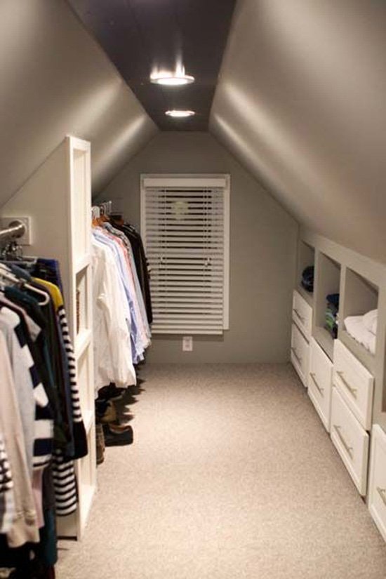 Potkrovlje možete iskoristititi na zaista brojne kreativne načine. Možete napraviti igraonicu za klince, kutak za čitanje, radnu sobu, biblioteku… Možete čak napraviti i sjajan garderober pod uslovom da napravite police po mjeri koje će se savršeno uklopiti u sve nagibe.