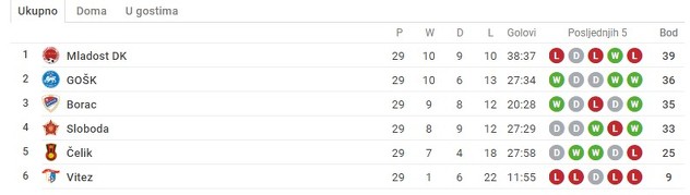 Tabela Lige za opstanak: