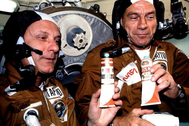 Kosmonauti su se čak odlučivali na dijetu kako bi bilo dovoljno prostora u njihovim odijelima za flašu alkohola, a da pri tome ne budu teži nego što je dozvoljeno. Još devedesetih godina prošlog stoljeća se pojavila fotografija ruskih kosmonauta nastala tokom “konjak zabave” u svemirskoj stanici Mir, a snimio ju je NASA-in astronaut.