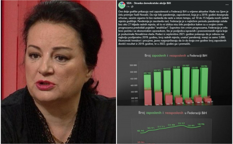 Neovisni eksperti hvataju se za glavu nakon što su na Facebook stranici SDA objavljeni grafikoni koji bi trebali ilustrirati rast zaposlenosti u FBiH u mandatu aktuelne Vlade na čelu sa Fadilom Novalićem. Da nije bilo pandemije koronavirusa koja je u 2019. godini dosegla vrhunac, navode iz SDA, broj zaposlenih rastao bi za 10.000 – 15.000 godišnje. Teško se sjetiti kada je u BiH otvorena veća fabrika, u vlastitom okruženju vidimo da se mladi iz BiH zaista zapošljavaju ali uglavnom u Njemačkoj, ali na čemu se zasniva ovakva SDA statistika za portal “Avaza” otkriva doktorica ekonomskih nauka, analitičarka Svetlana Cenić.
