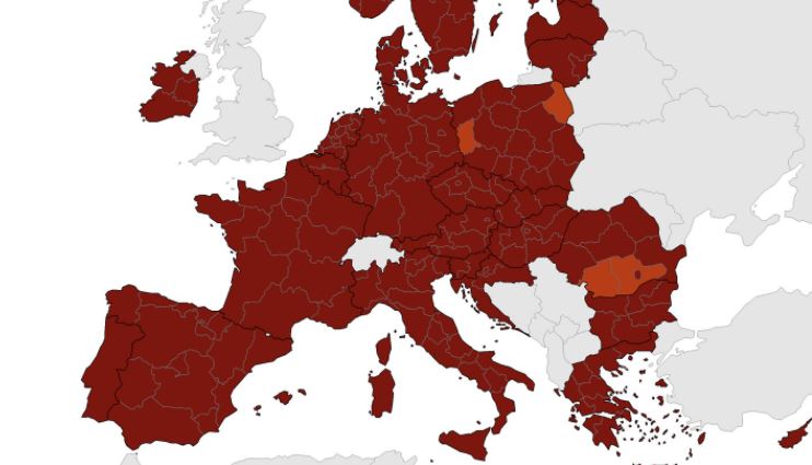 Objavljena najnovija koronakarta, gotovo cijela EU tamnocrvena