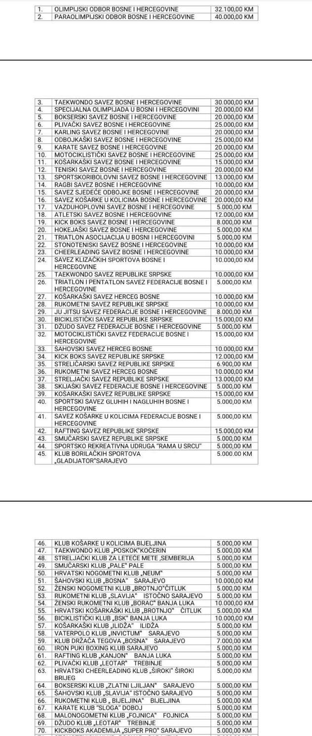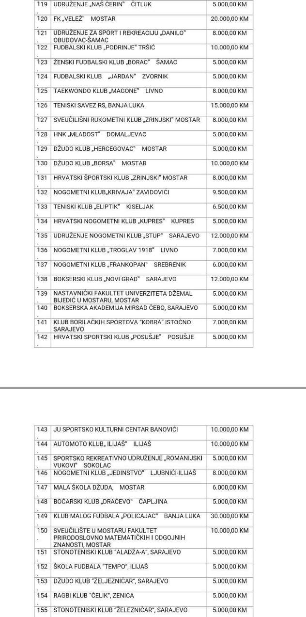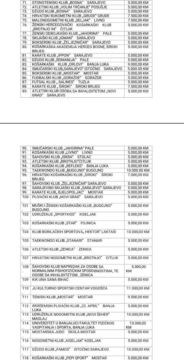 Među dobitnicima se nalaze i razne škole sporta, cheerleading klubovi, klubovi borilačkih sportova, sportsko rekreativne udruge i razna druga udruženja građana, što bi se u narodu reklo “i kunti i panti”, no na njemu nema Kluba vodenih sportova Orka, najboljeg kluba u Bosni i Hercegovini po izboru Olimpijskog komiteta BiH za 2022. godinu.