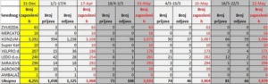 Kompletnu tabelu o uposlenicima Agrokorovih kompanija u Bosni i Hercegovini, od 31. decembra 2016. do 31. oktobra 2017. godine, možete pogledati u našoj fotogaleriji.