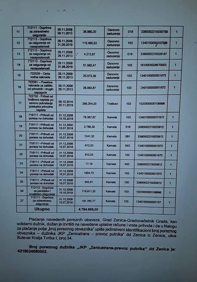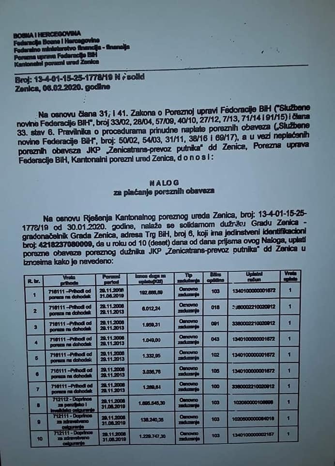 Ako smo prije bili nesigurni da li bi iznos od 3 miliona KM završio u sanaciji JKP Zenicatrans sada smo sigurni da ne bi i da bi to sve sebi porezna uprava prisvojila. Sanirali bi dugovanja koja su napravljena za vrijeme bivše vlasti, kada se firma potkradala o čemu smo obavijestili i Tužilaštvo na četiri stranice krivične prijave.