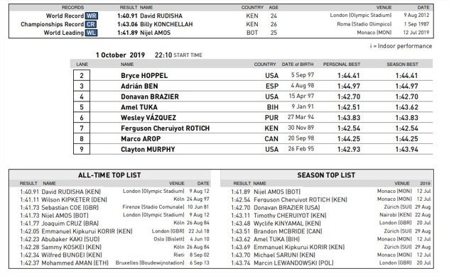 Cheruiyot Rotich (Kenija), Adrian Ben (Španija), Donavan Brazier (SAD),