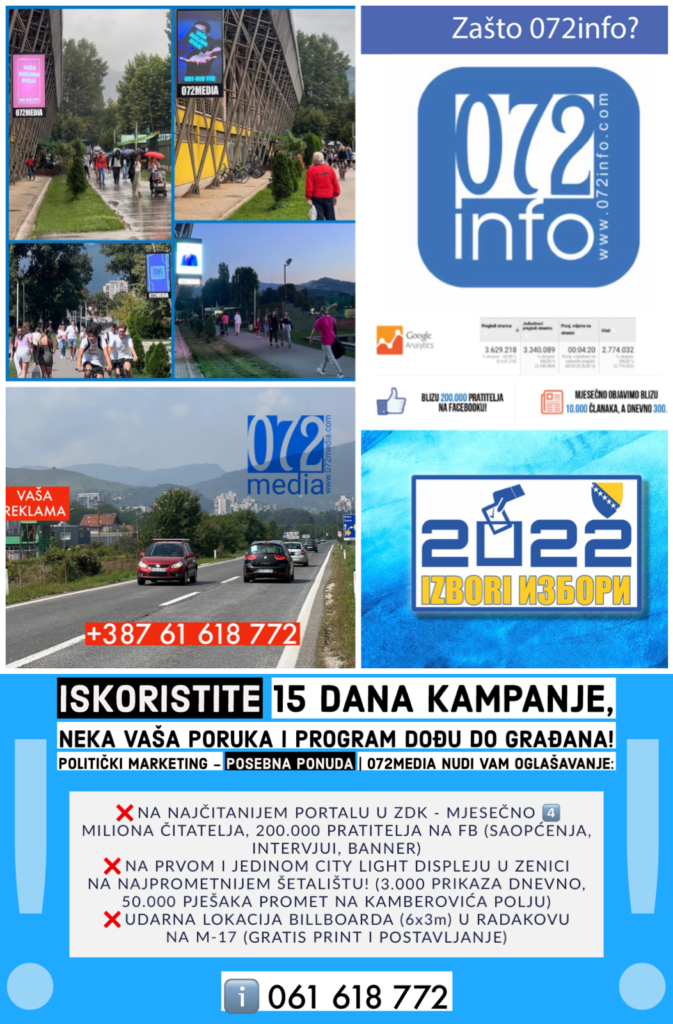 U povodu predstojećih Općih izbora 2022. godine, koji se u našoj zemlji održavaju 2. oktobra, portal 072info pokreće anketu.