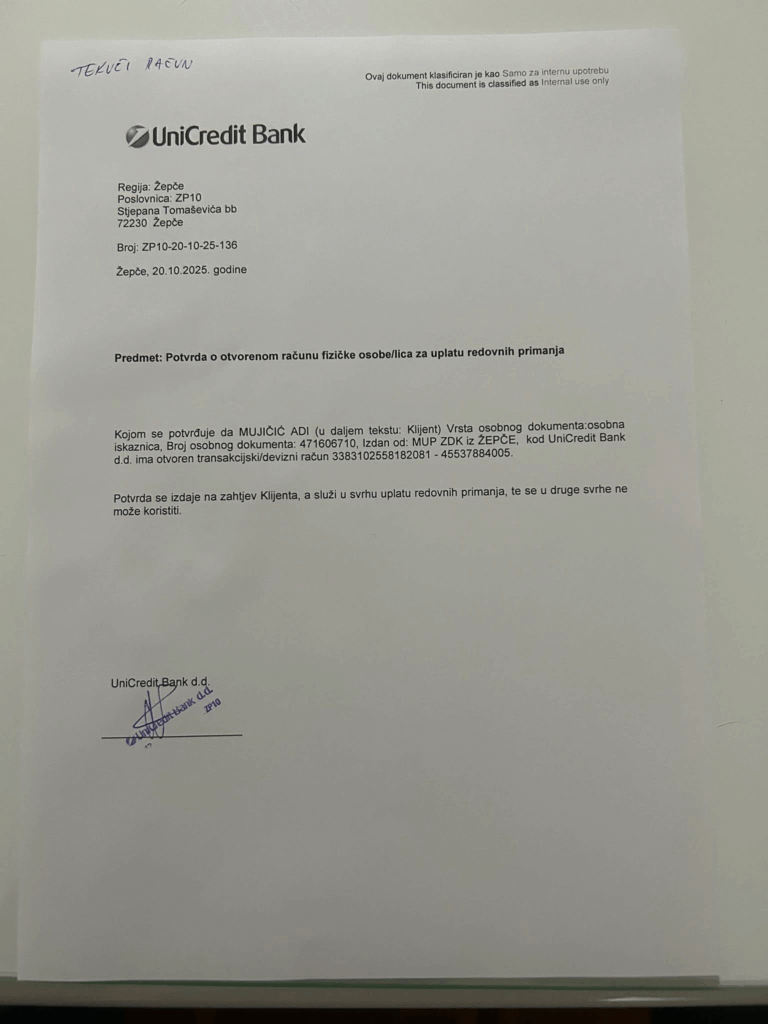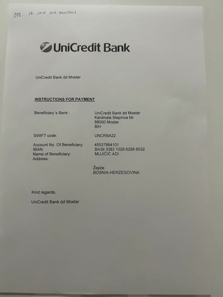 U prilogu se nalaze računi ako neko želi uplatiti novac iz BiH ili iz inostranstva.