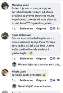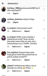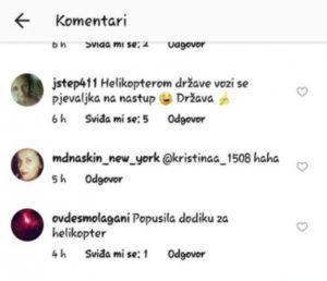 “Sramota kojoj nema kraja, još se hvalite što parazitirate na grbači jadnog naroda”, “Čijim parama Ceco?”, “Uspjela “mala beba” i zaspati dok su obilazili samo krug iznad Banja Luke”, “Ona se vozi našim helikopterom, a u bolnici nemamo zavoja” , samo su neki od komentara ispod Cecine slike.