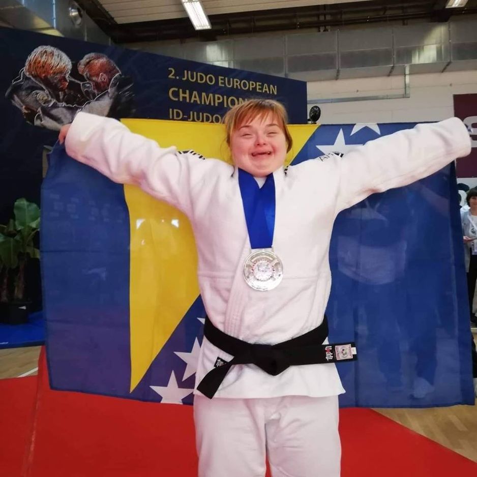 Da upornost može sve, dokaz je mlada Azra Dedić iz Bihaća, koja je prije nekoliko dana u njemačkom Kelnu osvojila zlatnu medalju na Evropskom prvenstvu u ID judu u kategoriji do 70 kilograma.