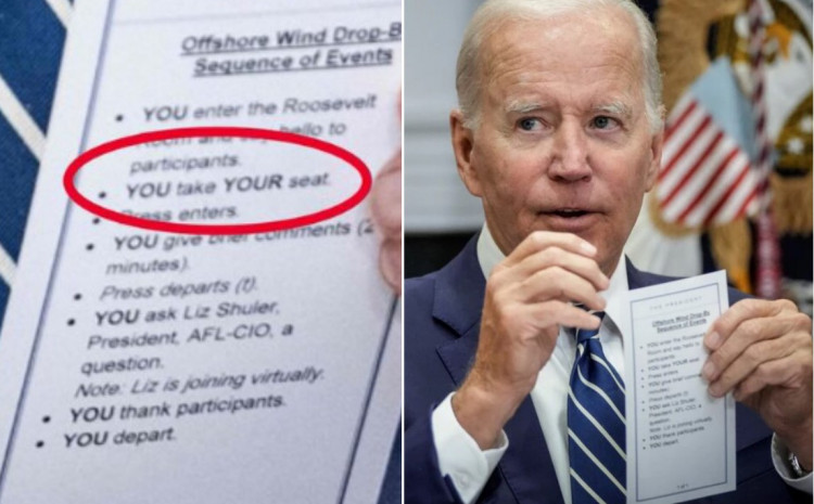 Američki fotoreporteri koji su prisustvovali sastanku slikali su Bajdena kako u ruci drži karticu s uputama koje govore da treba sjesti, održati kratki izvještaj u trajanju od dvije minute te otići sa sastanka.