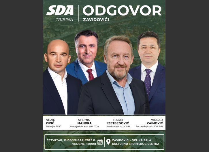 Građanima Zavidovića upućen je poziv na javnu tribinu pod nazivom “ODGOVOR”, koja će biti održana 18. decembra 2025. godine u 18:00 sati, u Velikoj sali Kulturno-sportskog centra Zavidovići.