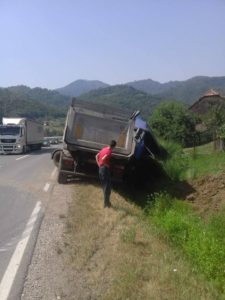 Nesreća se desila kod Begovog Hana gdje je došlo do slijetanja teretnog motornog vozila sa kolovoza.