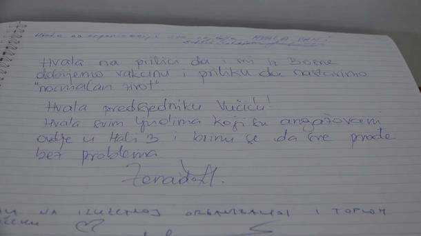 Veliki broj bh. građana je prethodnih dana pohrlio u Beograd kako bi se vakcinisali protiv koronavirusa. U knjizi utisaka na Beogradskom sajmu gdje se odvija imunizacija Bosanci i Hercegovci su uputili brojne poruke zahvalnosti predsjedniku Srbije Aleksandru Vučiću.