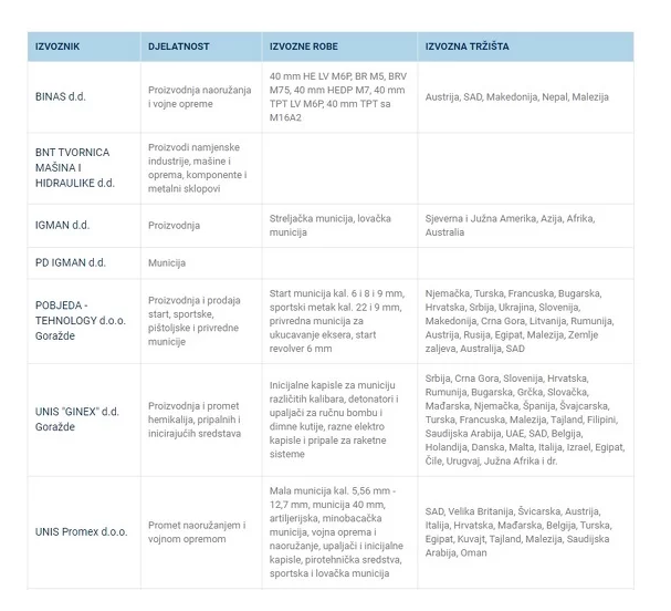 Upitani da li je bilo slučajeva da kompanije koje posluju u okviru namjenske industrije nisu zadovoljile sigurnosne provjere za izvoz oružja iz Bosne i Hercegovine, u Ministarstvu su nam kazali da nije bilo takvih slučajeva.