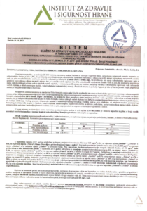 Pogledajte Bilten o zdravstenoj ispravnosti namirnica, vode za piće, sanitaciji objekata i higijeni usluživanja za mjesec septembar i oktobar, Instituta za zdravlje i sigurnost hrane Zenica.