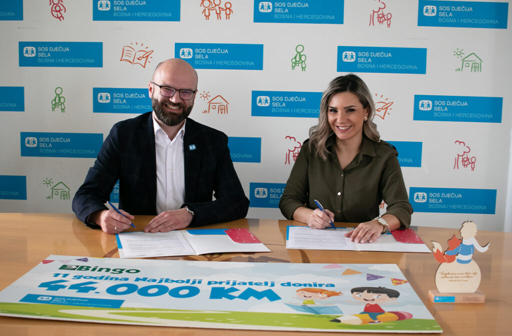 Donacija u iznosu od 36.000 KM bit će usmjerena na pokrivanje godišnjih troškova života porodice iz SOS Dječijeg sela Sarajevo, a sa dodatnih 8.000,00 KM Bingo će podržati dva studenta iz Gračanice koji se školuju u Tuzli.