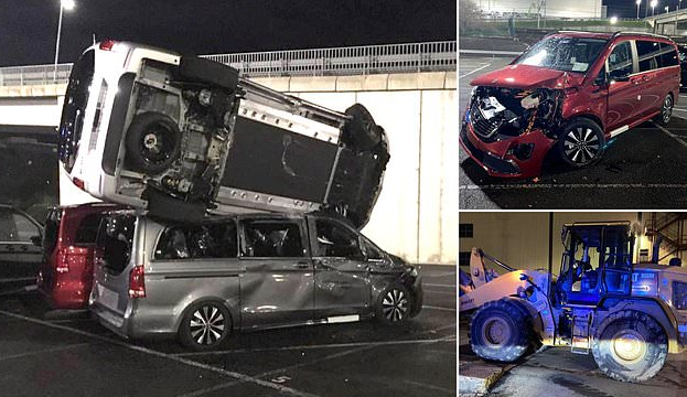 Lupanje je trajalo nekoliko minuta, a zaustavio se kada je obezbjeđenje ispalilo metak upozorenja u vazduh. Bivši radnik ostavio je oko 50 uništenih vozila, kojima nema popravke, a fotografije na društvenim mrežama prikazuju zgužvane kombije koji su “poslagani” jedan na drugi.