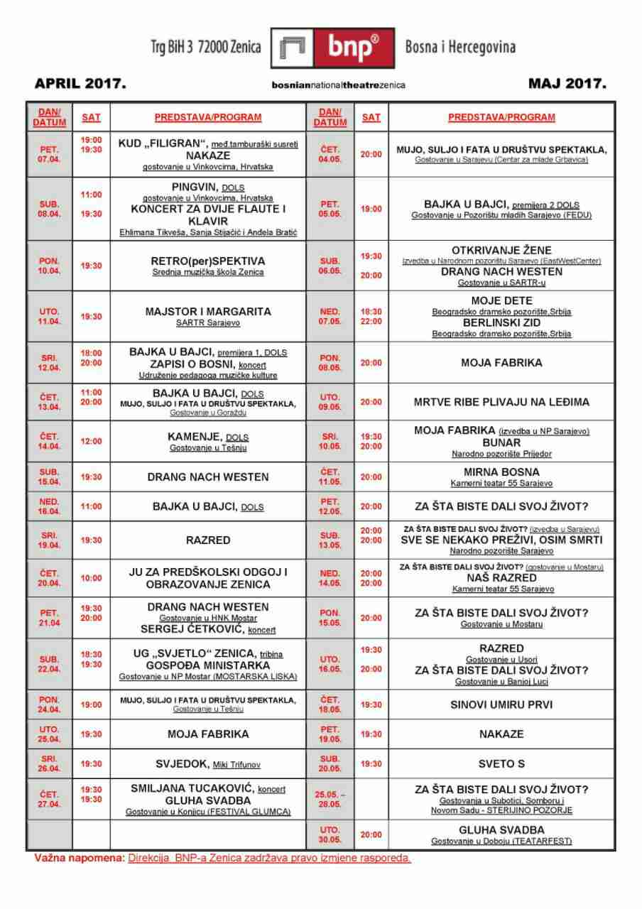 Bosansko narodno pozorište i tokom aprila mjeseca svim posjetiocima nudi bogat raspored dešavanja.