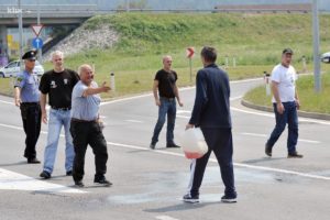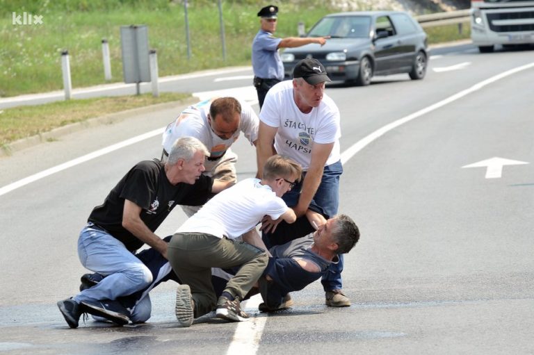 Nakon što je grupa od desetak bivših boraca blokirala petlju, jedan od njih je donio kanister s benzinom, a zatim ga posuo oko sebe te sa upaljačem u rukama prijetio da će se zapaliti.