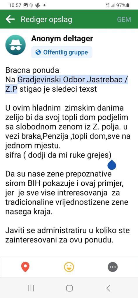 Na društvenim mrežama osvanula je fotografija bračne ponude muškarca koji svoj topli dom želi da podijeli sa slobodnom ženom, piše “072info”.