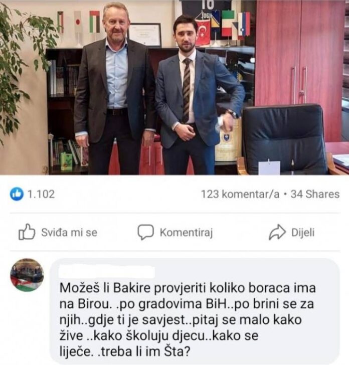 – Možeš li Bakire provjeriti koliko boraca ima na birou po gradovima BiH? Pobrini se za njih! Gdje ti je savjest? Pitaj se malo kako žive, kako školuju djecu, kako se liječe, treba li im šta – napisao je ovaj korisnik Facebooka, čiji identitet nećemo objaviti kako bismo čovjeka zaštitili “bijesa silnog Osmice”, direktora Bakirove privatne, porodične prisluškivačko-mafijaške policije.