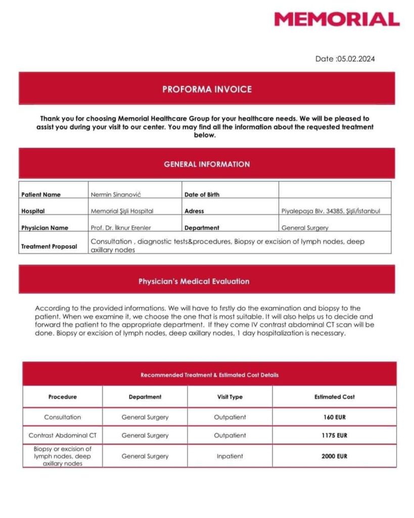 Nakon konsultacija sa klinikom iz Turske, preporučene su određene pretrage kako bi se otkrio uzrok njegovih zdravstvenih problema i započelo sa adekvatnom terapijom.