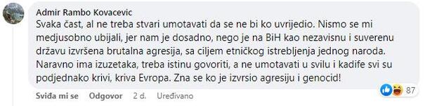 Ispod videa kojeg je objavio Bešlagić je dobio skoro četiri hiljade komentara, a jedina zamjerka se odnosi na rečenicu o karakteru rata.
