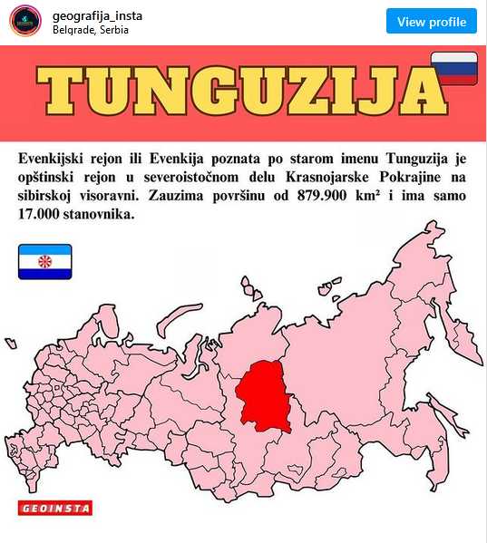 Ipak, Tunguzija postoji i nalazi se u Rusiji, tačnije u sjeveroistočnom dijelu Krasnojarske Pokrajine.