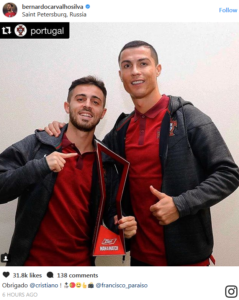Za igrača utakmice igranoj u St. Peterburgu izabran je Cristiano Ronaldo koji je zabio iz jedanaesterca. No zvijezda madridskog Reala nagradu je dala saigraču Bernardu Silvi.