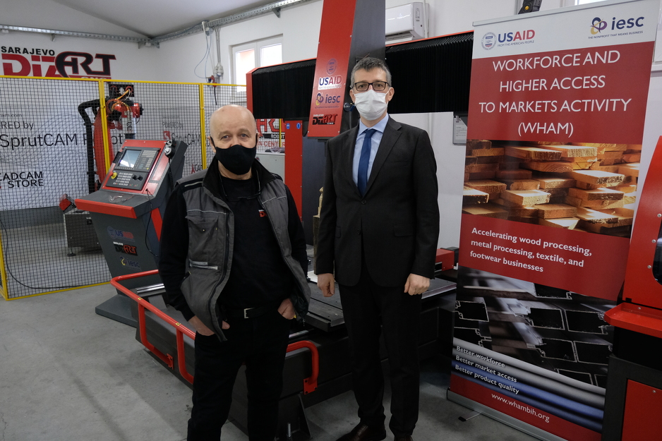 “CNC mašine proizvodim već 15 godina. Razvili smo školu za CNC operatere koja se pokazala kao dobra stvar, uzimamo ljude besplatno sa biroa, obučavamo ih. Osnovna djelatnost nam je proizvodnja CNC mašinama, a sada se bavimo i robotima, edukacijama, gledamo kako da proširimo naš rad i stvorimo prilike za mlade. Izvozimo preko 80% za zapadnoevropske zemlje, što nam daje stabilnost i priliku za ulaganja. Napravili smo petoosnu CNC mašinu. To je nešto što smo planirali da realizujemo, a onda je USAID podržao cijeli proces, što nas je ubrzalo i napravili smo mašinu koja je naš ponos. Polaznici obuke će moći raditi na njoj, što je odlična prilika za one koji žele da uče i steknu prave vještine. Sarađujemo sa Mašinskim fakultetom u Sarajevu. Nama je cilj da što više ljudi zaposlimo. Većina ljudi koja prođe treninge dobije šansu za zaposlenje”, pojašnjava Ahmić.