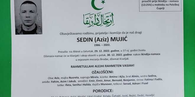 Na Bolji svijet je preselio Sedin Mujić iz Kiseljaka u 37. godini života.