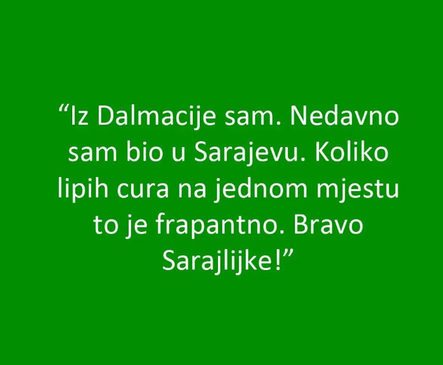 “Iz Dalmacije sam. Nedavno sam bio u Sarajevu. Koliko lipih cura na jednom mjestu to je frapantno. Bravo Sarajlijke”, napisao je.