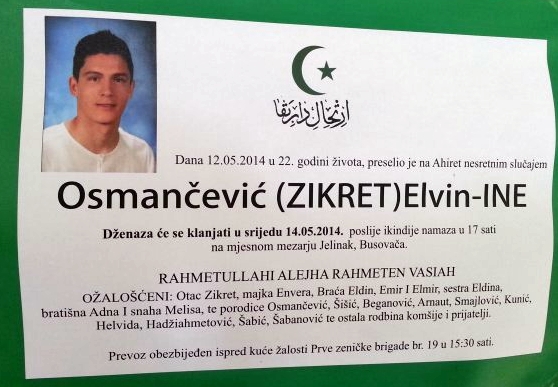 Grafit su jučer obrisale komšije, a dženaza i ukop stradalog Elvina Osmančevića obavit će se danas iza ikindije namaza, na mjesnom mezarju Jelinak u Busovači.