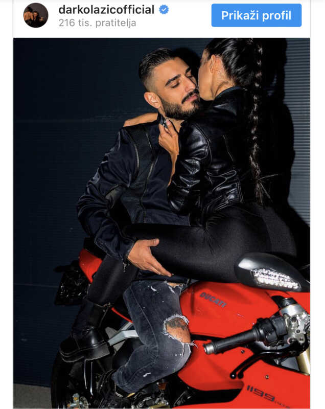 Naime, na fotografiji je Lazić na crvenom motoru koji strasno grli svoju dragu, držeći je za nogu, a ona mu sjedi u krilu.