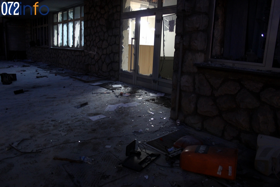Na svu sreću jučer u večerašnjim satima stanje se poprilično smirilo, ali od ranih jutarnjih sati  komunalne službe i građani potpomažu u otklanjanju polupanih stakala na zgradama kantonalne vlade i općine Zenica.