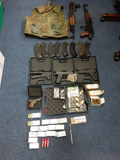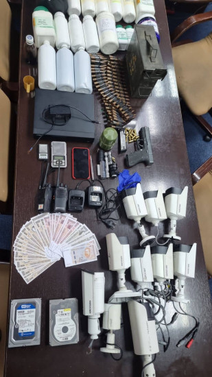 Zatim jedan snimač marke “Alhua”, dva metalna osigurača-prstena ručne bombe, kao i četiri eksplozivne naprave-bombe, inicijalna kapsula, tromblonska trenutna mina, improvizovana eksplozivna naprava, tri pištolja, jedan pištolj sa prigušivačem, 1.390 komada municije raznog kalibra, jedan prigušivač, osam okvira za automatsku pušku, jedan improvizovani pištolj olovka, dvije automatske puške, pet limova za municiju, jedan zatvarač za automatsku pušku i dva mobitela.
