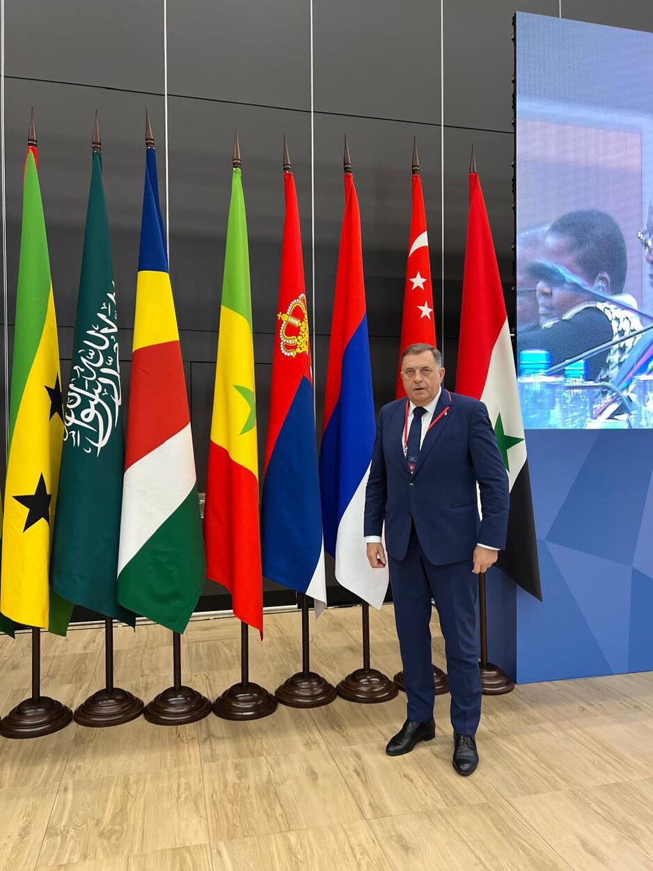 “Zastava Republike Srpske nalazi se među zastavama mnogih drugih zemalja učesnica Bezbjednosnog foruma u Sankt Peterburgu”, navedeno je na X nalogu Milorada Dodika.