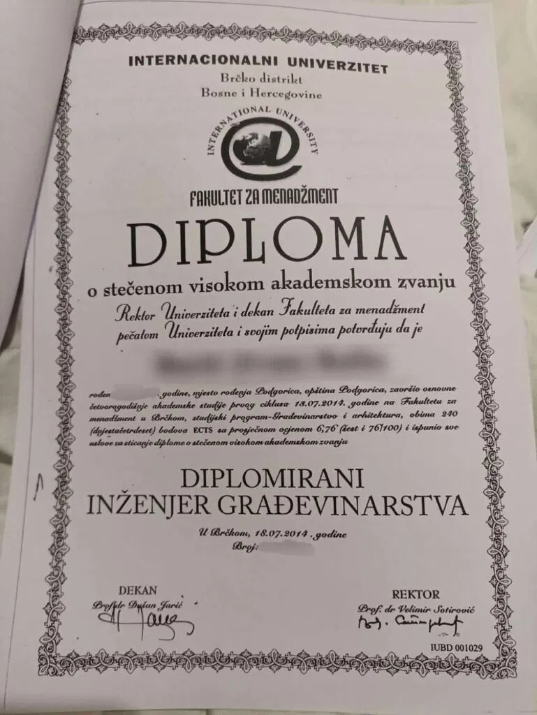 Nostrifikacija diploma s Internacionalnog Univerziteta Brčko u Crnoj Gori je zabranjena krajem prošle godine.