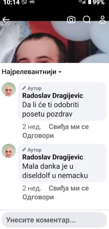 – Razočarani smo svi veoma. Ne znamo šta da mislimo, sumnjamo u sve što nam je do sada rečeno, jer se ispostavlja vremenom da dokaza nema. Ja sam počeo da vjerujem, odnosno, da se nadam, da je Danka ipak negdje i da je živa. Daj Bože da su je predali nekome, a ne ubili. Ono što je u nama probudilo dodatnu sumnju u to je objava koja se pojavila na profilu koji je navodno od Radoslava Dragijevića, oca od Dejana, a napisao je da je moja unuka u Dizeldorfu u Njemačkoj – rekao je on za Telegraf.